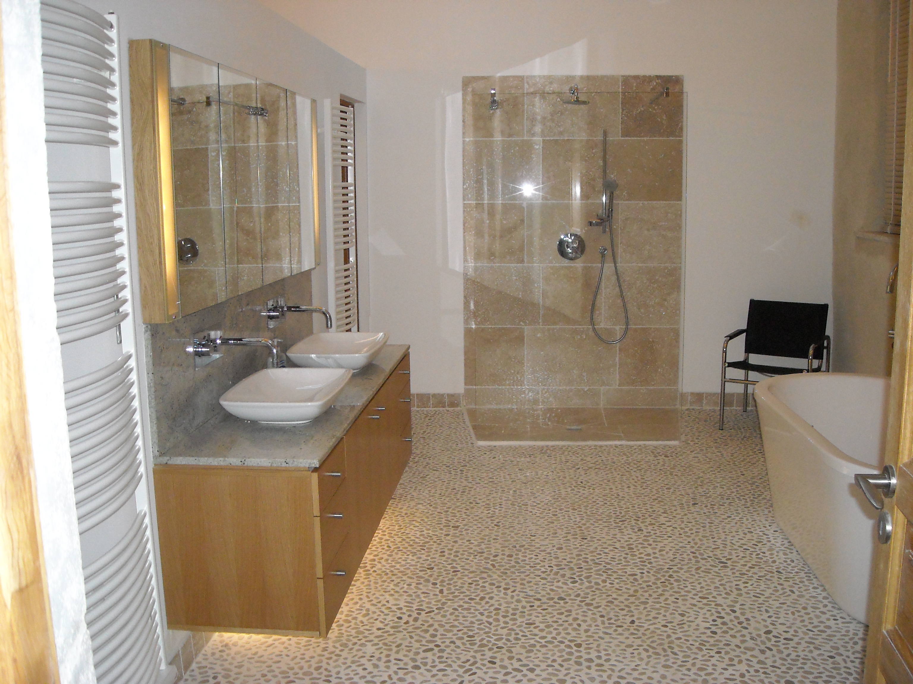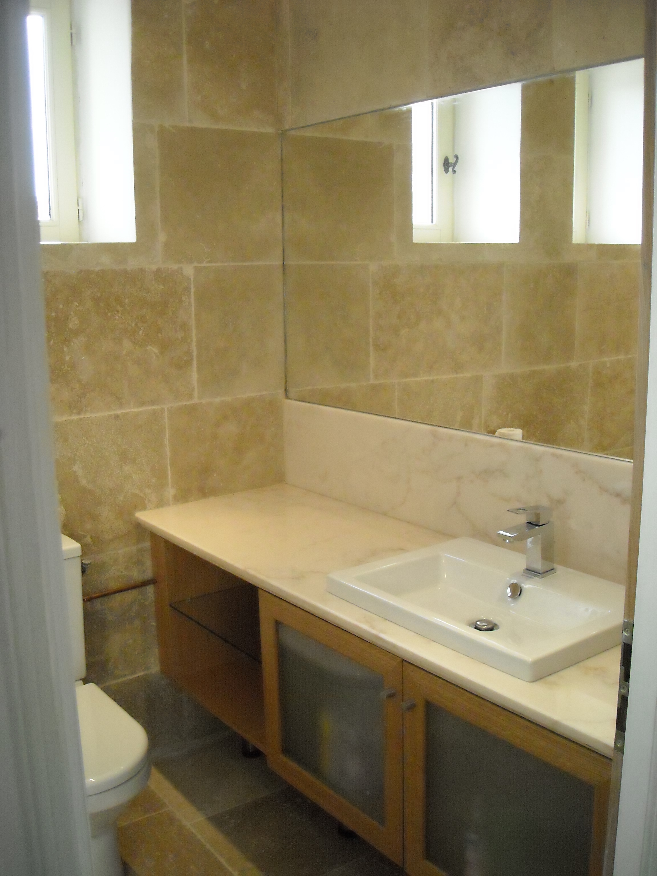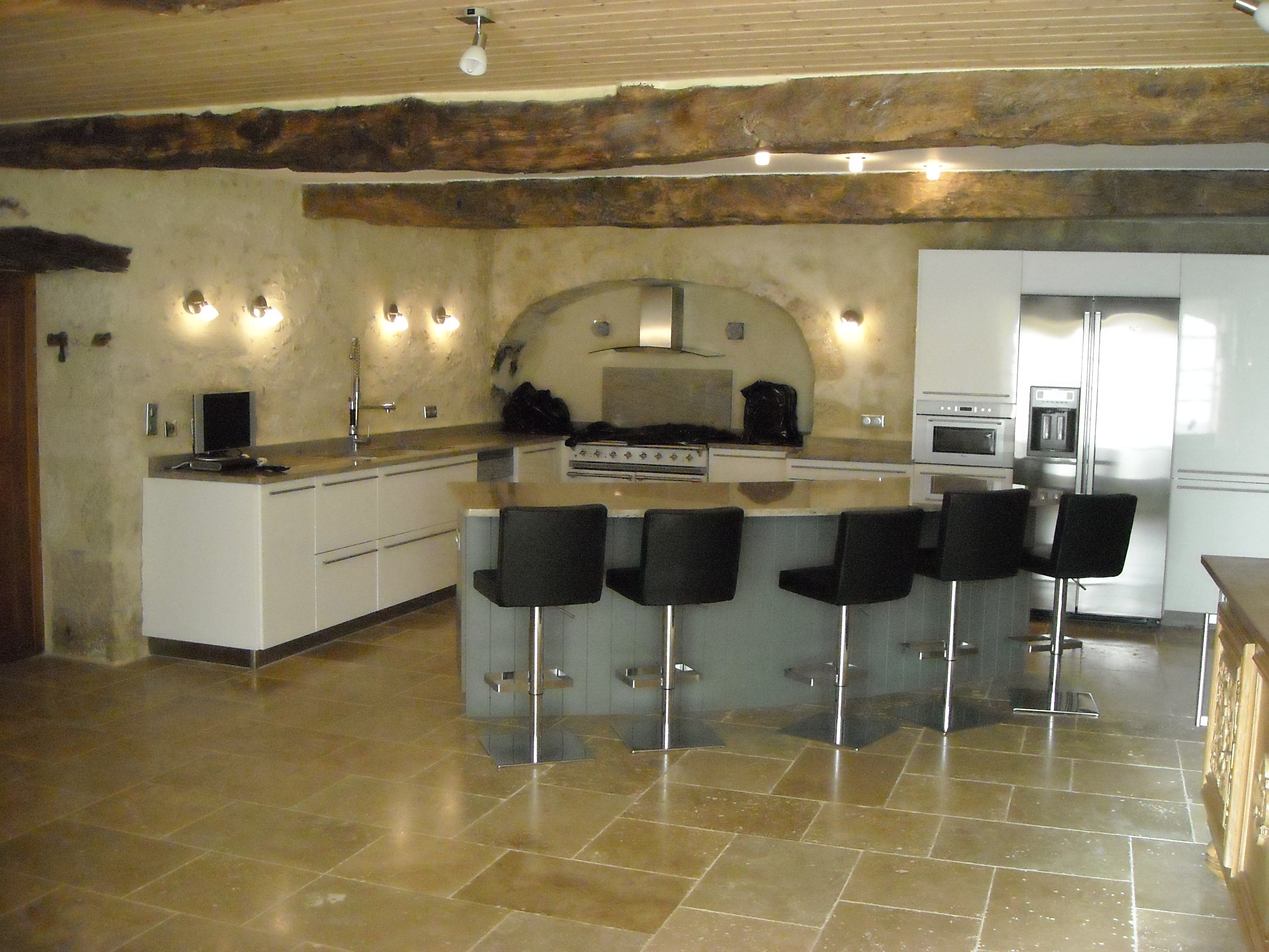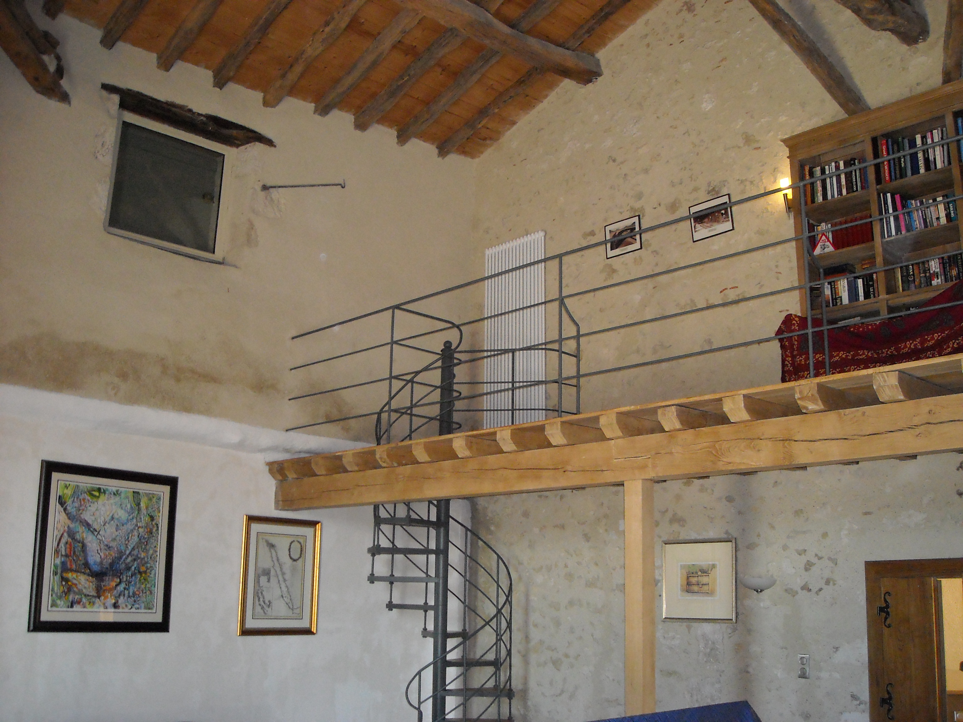 This dilapidated chicken coop with bread oven was converted to a three bedroom bunk house, sleeping 5 people with a walk-in wet room and bathroom and a living space downstairs. The bread oven was restored to use with the help of local artisans, in keeping with the original design.